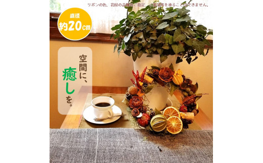 八ヶ岳南麓の木の実や花の殻、ドライフルーツなどを使った長持ちするリースです。