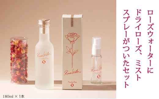 スプレーボトルと国産の無農薬栽培で作られたドライローズを添えた特別なセットです。