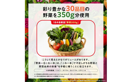 彩り豊かな30品目の野菜350g分を使用した野菜100%のミックスジュースです