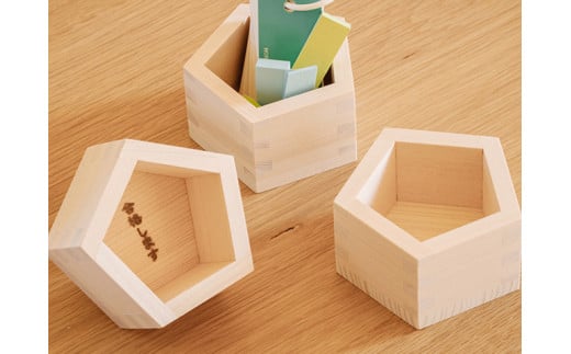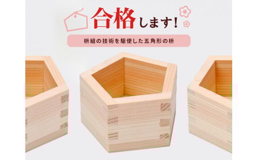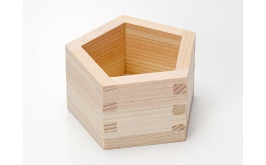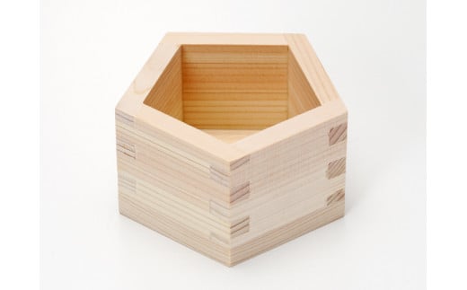 ます組の技術を駆使した五角形のます。桝の匠の技を高度に活かした一品です。他では手に入りません。