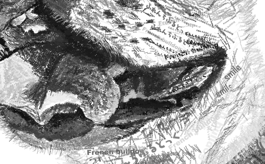 7. 文字だけを使った絵画「文字ベースアート (MojiBa)」フレンチブルドッグ A4サイズ(白黒)