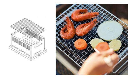 【Hot Camp】+Base基本セット (炭火串焼き・網焼き器) 耐熱黒塗装タイプ