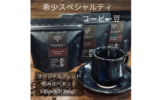 【華きりん】本格直火焙煎 希少スペシャルティコーヒー豆 オリジナルブレンド飲み比べセット 3種×各100g(計300g) 粉