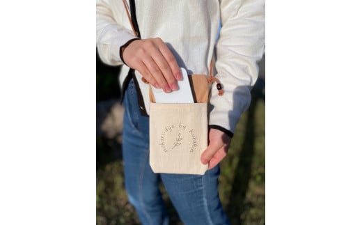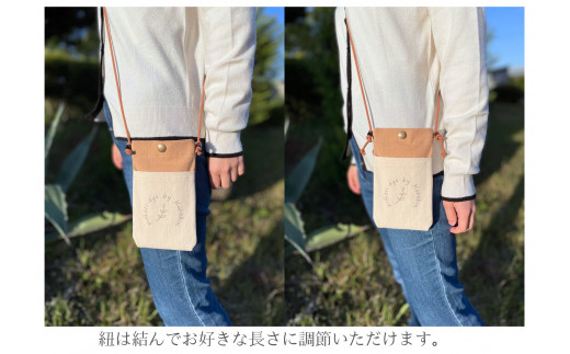 のこり染のナチュラルな色合いが特徴的なスマホショルダー。