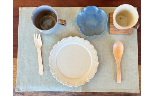 麻の自然な風合いとのこり染のやさしい色合いが食卓を明るく彩ってくれます。