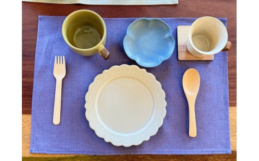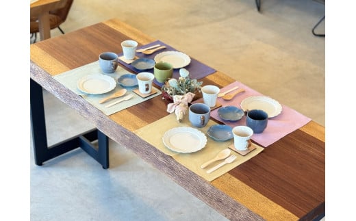麻の自然な風合いとのこり染のやさしい色合いが食卓を明るく彩ってくれます。