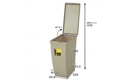 開口が広いため、大きめのゴミもすんなり入れることができます。また、フタは約90度まで開けることができます。