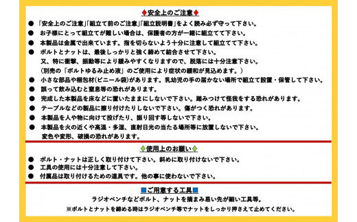 ※本製品は金属でできています。指を切る恐れがありますので、十分に注意して組み立ててください。