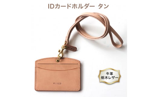 IDカードホルダー (ストラップM付) タン色 牛革 (栃木レザー) minca|栃木レザーのIDカードホルダー 社員証と名刺、カード等も入れられる [0347]