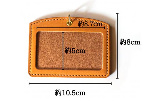 7. IDカードホルダー (ストラップM付) タン色 牛革 (栃木レザー) minca|栃木レザーのIDカードホルダー 社員証と名刺、カード等も入れられる [0347]