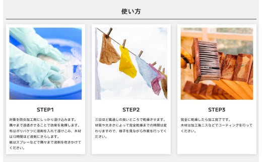 塗布した木材や布、紙が火に接しても、その部分だけが炭化し延焼しないため、火が自然に鎮火。