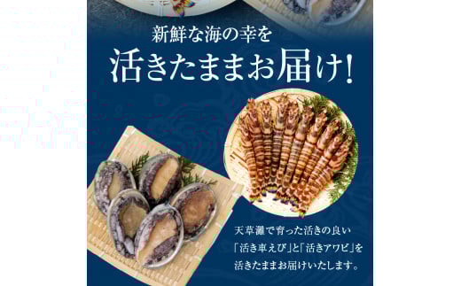 天草灘で育った活きの良い「活き車えび」と「活きアワビ」を