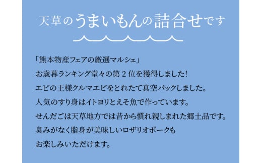 天草 わくわく便 セット うまいもん 詰め合わせ 車海老 白身魚 すり身 旬 魚 切り身 ロザリオポーク しゃぶしゃぶ 郷土銘品 せんだご 豚肉 シーフード 海産物 海鮮 海の幸