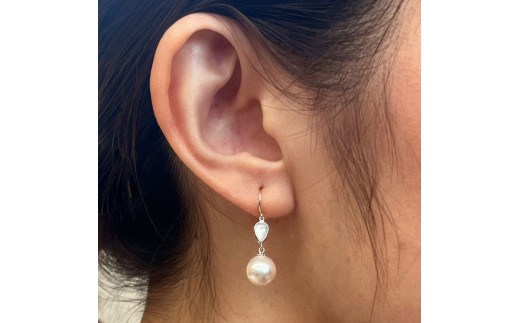 S101-419_あこや真珠 天草 ピアス シェル 8mm - 8.5mm ドロップ ホワイトピンク K18 K14 YG K14WG