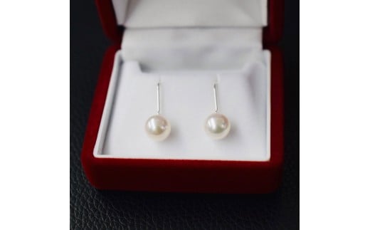 S085-479_あこや真珠 天草 ピアス フック 7.5mm - 8mm ホワイトピンク 真珠 K14WG
