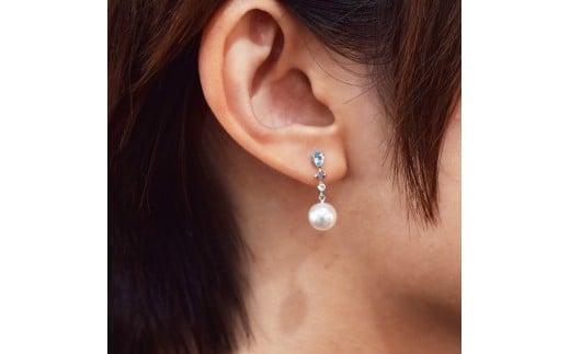 S085-498_あこや真珠 天草 ピアス 半貴石 7.5mm - 8mm ホワイトピンク 真珠