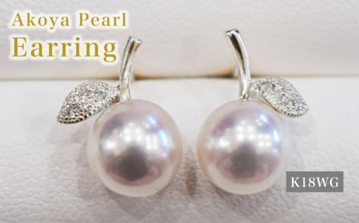 S085-488_あこや真珠 天草 ピアス りんご ダイヤモンド 0.02ct K18 7.5mm - 8mm ホワイトピンク 真珠 K18WG