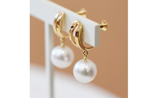 S085-501_あこや真珠 天草 イヤリング 7.5mm - 8mm ホワイトピンク 真珠 半円 K18YG