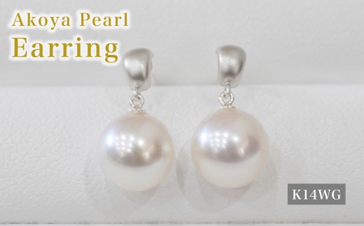 S085-514_あこや真珠 天草 ピアス 7.5mm - 8mm ホワイトピンク 真珠 半円 マット K14WG