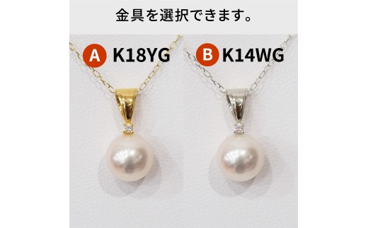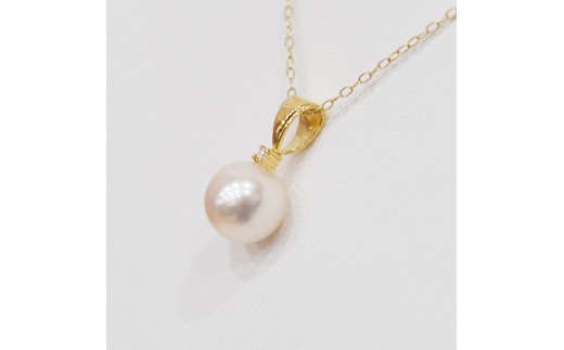 S101-477_あこや真珠 天草 ネックレス ペンダント ダイヤモンド 0.01ct 8mm - 8.5mm ホワイトピンク K18 K14