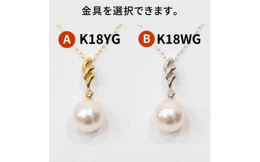 S101-465_あこや真珠 天草 ネックレス ペンダント ダイヤモンド 0.01ct 8mm - 8.5mm ホワイトピンク