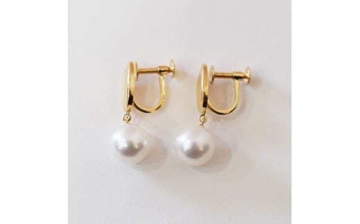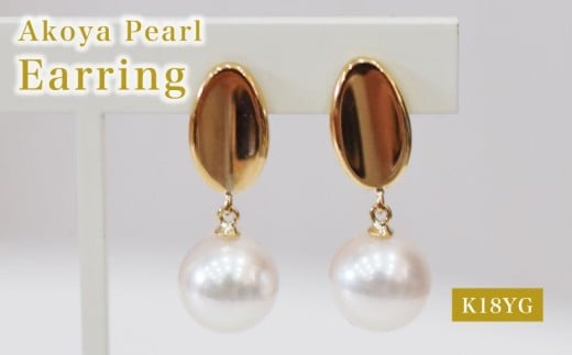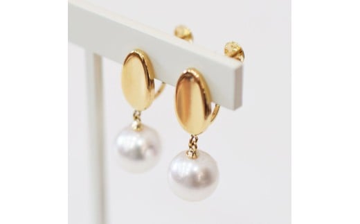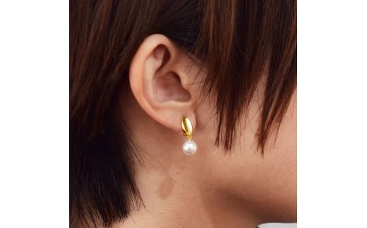 S085-504_あこや真珠 天草 イヤリング 7.5mm - 8mm ホワイトピンク 真珠 楕円 K18YG