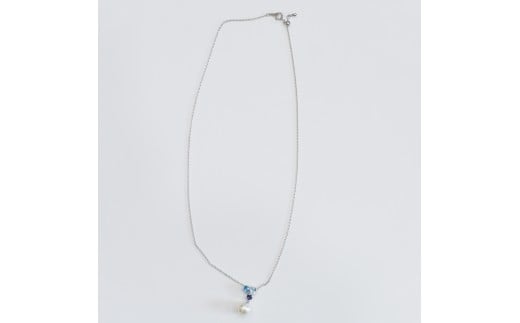 7. S101-399_あこや真珠 天草 ネックレス 9mm - 9.5mm ホワイトピンク 真珠 (半貴石 スカイブルートパーズ ブルートパーズ アイオライト)