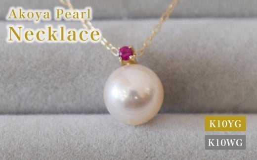 S085-553_あこや真珠 ペンダント ネックレス K10 8mm - 8.5mm 天草 熊本 ホワイトピンク 誕生石 7月 ルビー 半貴石 本真珠