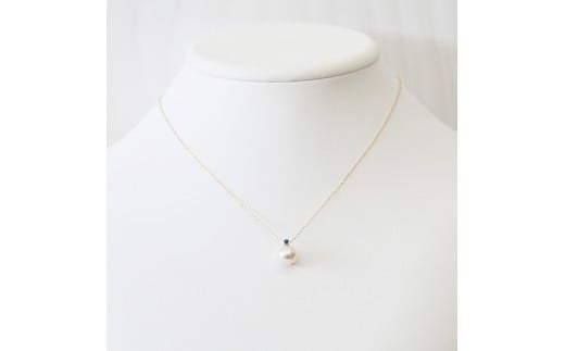 S085-559_あこや真珠 ペンダント ネックレス 8mm - 8.5mm K10 天草 熊本 ホワイトピンク 誕生石 9月 サファイヤ 半貴石 本真珠