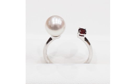 S085-460_あこや真珠 リング 7.5mm - 8mm ホワイトピンク ガーネット 真珠 (G:14号)