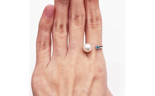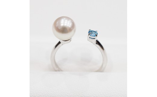 S085-446_あこや真珠 リング 7.5mm - 8mm 天草 ホワイトピンク ブルートパーズ 真珠 (A:8号)