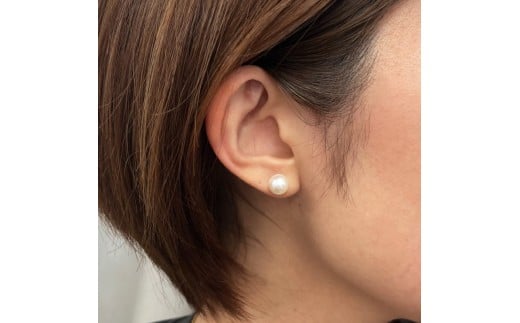 S085-590_あこや真珠 天草 ピアス 7.5mm - 8mm ホワイトピンク 真珠 (A)