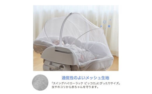 スイングハイローラックピッコロ専用虫よけカバー。メッシュ生地で赤ちゃんもパパママも安心です。