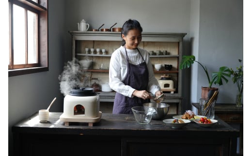 185-2_【受注生産】おうちかまど 生成一合炊き|かまど 竈 卓上 お米 ご飯 釜飯 炊き立て おいしい 日用品 ハンドメイド 家具 工芸品 左官 伝統技術 漆喰 南部鉄器 アウトドア キャンプ 屋内 イベント インテリア 一合