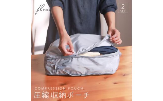 17-34_【FLOAD/フロード公式】 トラベル圧縮袋(グレー)| 2点セット トラベルポーチ 圧縮 圧縮ポーチ 圧縮収納ポーチ 圧縮バック 旅行用圧縮袋 旅行用圧縮バッグ 旅行 収納 バッグ 愛知県 岐阜県 名古屋 acct FLOAD