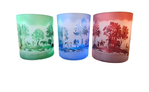 サンドブラストでエッジング(彫刻)されたガラス製品です。