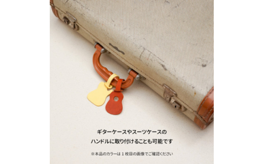 ラゲッジタグを彷彿とさせる、ギターの形をしたキーホルダーです。