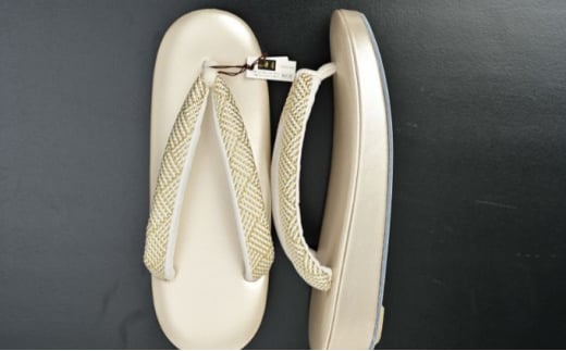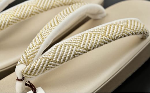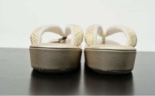 こちらは、シャンパンゴールド色の台に組織りの花緒を挿げた草履(ぞうり)です。