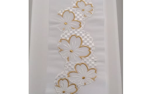 7. 半衿 桜と市松 白地に白とゴールド 刺繍 半襟 [№5275-0411]