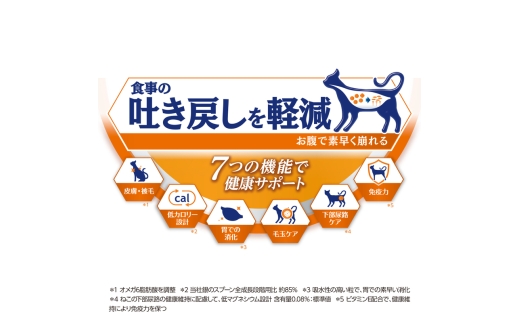 ●食事の吐き戻し軽減を中心とした7つの機能で健康サポート。