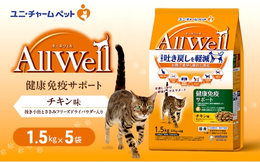 AllWell 健康免疫サポート チキン味 挽き小魚とささみフリーズドライパウダー入り 1.5kg×5袋 ペットフード キャットフード 猫のごはん 猫用フード 猫 ペット ドライ ユニ・チャーム ペット ユニ・ケアー [№5275-0445]