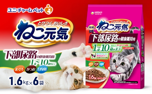 6. ねこ元気 下部尿路の健康維持用 1歳~10歳頃まで まぐろ・かつお・白身魚入り 1.6kg×6袋 ペットフード キャットフード 猫のごはん 猫用フード 猫 ペット ドライ ユニ・チャーム ペット ユニ・ケアー [№5275-0482]