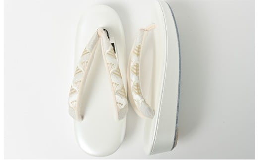 こちらは、白の牛革の台に松青海波柄の刺繍の花緒のぞうりです。