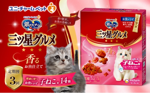 【定期便3回】銀のスプーン三ツ星グルメ 香るお魚仕立て健康に育つ子ねこ用 お魚レシピ 240g×14箱 3ヶ月連続お届け ペットフード キャットフード 猫のごはん 猫用フード 猫 ペット [№5275-0620]