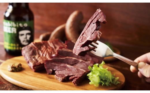 エゾシカベーコン:鹿肉(北海道産)、食塩、ぶどう糖、砂糖、水あめ/リン酸塩(Na)、酸化防止剤(ビタミンC)、調味料(アミノ酸)、発色剤(亜硝酸Na)、香辛料抽出物