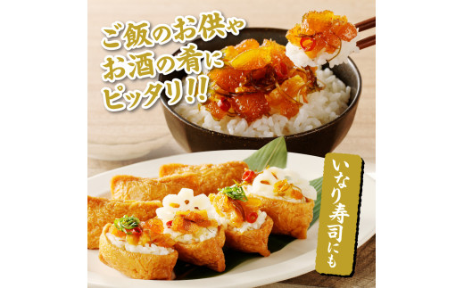 数の子(アラスカ産)、大根、醤油、砂糖米発酵調味料、昆布、いか加工品、かつお節エキス調味料、唐辛子魚介エキス、酵母エキス、還元水あめ、ソルビット、調味料(アミノ酸)、香料、増粘多糖類、酒精、保存料、(ソルビン酸K)、甘味料(ステビア)、着色料(黄色4号・黄色5号・赤色102号・赤色106号)、(一部に小麦・大豆を含む)