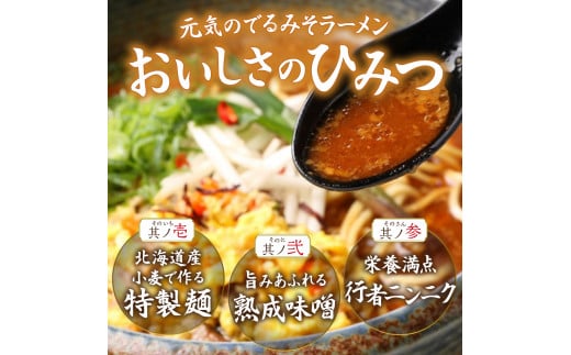 スープ:みそ、しょうゆ、おろしにんにく、ピーナッツバター、砂糖、おろし生姜、食塩、行者にんにく、調整豆乳、酵母エキス、ごま、香辛料/調味料(アミノ酸等)、カラメル色素、酸味料(一部に小麦・落花生・ごま・大豆を含む)