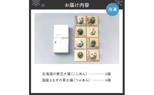 北海道の恵み豆大福4個×国産よもぎの草大福4個セット