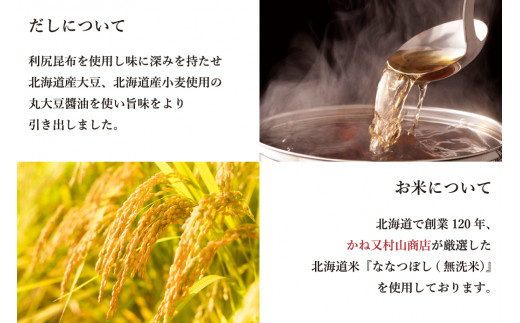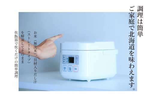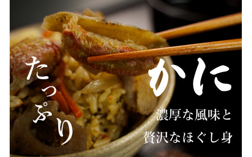 米(北海道産)、蟹、帆立、蓮根、牛蒡、醤油たれ(醤油、砂糖、食塩、昆布だし、純米酢)、人参、鰹節、濃厚だし(鰹節調味エキス、砂糖、食塩、そうだ鰹節、サバ節、小麦発酵調味料)砂糖、食塩、昆布、/トレハロース、調味料(アミノ酸等)、PH調整剤、酸化防止剤(V.C)、漂白剤(次亜硫酸ナトリウム)、アルコール、(一部に小麦、大豆、さばを含む)