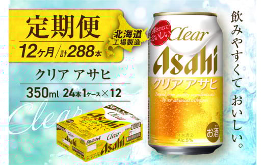 【定期便 12ヶ月】クリアアサヒ<350ml>24缶 1ケース 北海道工場製造 缶ビール ビール すっきり うまみ 晴れやか 北海道ビール工場製造 ビール定期便 アサヒビール 北海道 札幌市